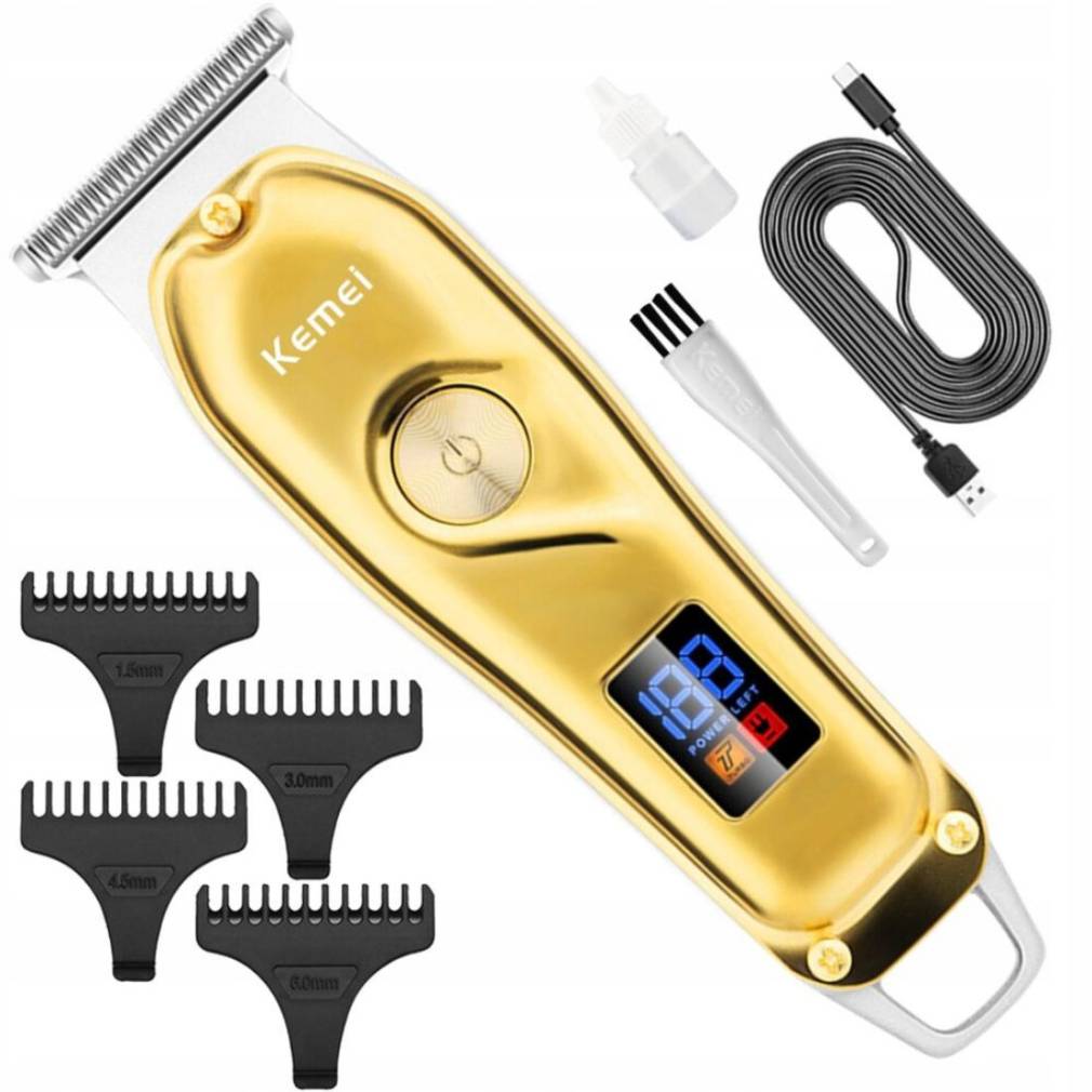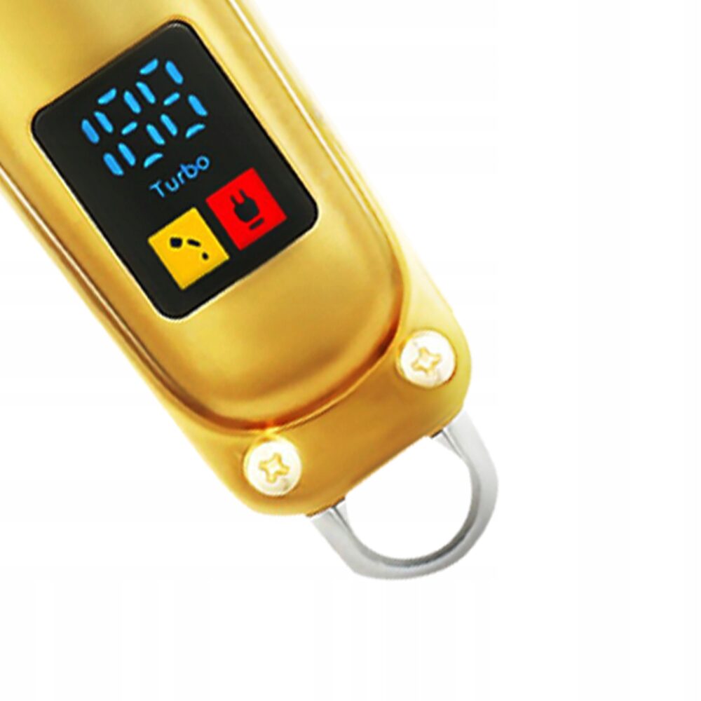Zelta trimmeris ar LED displeju, ko var tīrīt zem ūdens. Pēc pilnīgas uzlādes tas var darboties 100 minūtes. Spriegums 100-240V ~ 50/60Hz, jauda 5W. Trimmerim ir 600 mAh akumulators. Kopā ar produktu jūs saņemsiet papildu lietošanas pamācību. Uzlādes laiks 1,5 stunda, izmantojot komplektācijā iekļauto USB kabeli.