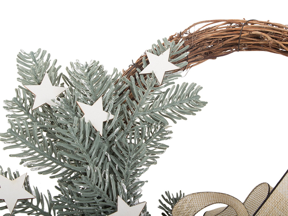 Ziemassvētku dekoratīvā vītne, sienas dekors, durvju dekors, Ziemassvētku rotājumi. Meklējat perfektu rotājumu, lai jūsu mājām piešķirtu svētku sajūtu? Mūsu Ziemassvētku vainags ar rotājumiem ir unikāls aksesuārs, kas ienesīs Ziemassvētku burvību jebkurā interjerā. Aplis ir izgatavots no dabīgiem zariņiem, kas savijas viens ar otru, radot pilnīgu, harmonisku kompozīciju. Vītne ir lieliska izvēle tiem, kas novērtē vienkāršību, eleganci un tuvumu dabai. Izdekorējiet savu interjeru ar skaistu, roku darbs vainagu, kas atgādinās par svētku burvību un Ziemassvētku tradīcijām. Iedvesma, kā skaisti izrotāt Ziemassvētku vainagu ar rotājumiem mājās: ? ieejas durvis - klasiskā vieta Ziemassvētku vainagam ir pie ieejas durvīm - tas rada svētku noskaņu jau no sliekšņa. Varat to pakārt pie sarkanas, zelta vai sudraba krāsas lentes, saskaņojot krāsas ar pārējiem dekoriem ārpusē. Lenti var sasiet bantītē, lai iegūtu elegantu pieskārienu. ? kamīna dzega vai plaukts - pakariet vainagu virs kamīna dzegas vai plaukta kā centrālo dekoratīvo elementu viesistabā. Vainags lieliski saderēs ar citiem rotājumiem, piemēram, egļu zariem, svecēm, mini rotājumiem vai lampiņām. ? Logs — logā iekārts vainags rada svētku atmosfēru gan mājā, gan ārpus tās. Varat pievienot nelielas LED lampiņas, lai vakarā radītu maģisku apgaismojumu, kas redzams no ārpuses. ? Kāpnes — gar margām var pakārt vainagu, lai kāpnēm piešķirtu šarmu. Ik pēc dažiem soļiem var novietot vainagus un starp tiem izvietot egļu zarus vai pievienot lampiņas, lai viesus vadītu augšup pa kāpnēm svētku atmosfērā. . Tehniskās specifikācijas: ? Simbols: ? Ziemassvētku detaļas ? Ideāls rotājums mājas iekšpusei un ārpusei ? Dabīgi čiekuri ? Viegla konstrukcija ? Ziemassvētku dizaina izmēri: ❄️ Koka vītnes diametrs: ❄️ Platums ar zariņiem: ~ ❄️ Augstums ar zariņiem: ~ Komplektā ietilpst: ? Ziemassvētku vītne ar rotājumiem ? Folijas iepakojums