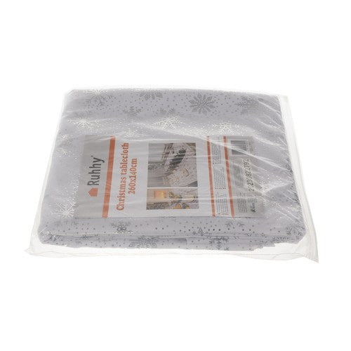 Ļoti liels Ziemassvētku galdauts, balts ar sniegpārslām, 260 x 140 cm, Ziemassvētku galda dekors - galdauts palīdzēs radīt svētku atmosfēru mājās. Tas padarīs interjeru mājīgāku un maģiskāku, kas ikvienu ienesīs svētku noskaņā. Grezni - dekorēts ar nelielu sudrabainu un mirdzošu sniegpārslu un punktiņu rakstu. Tas būs lielisks papildinājums sarkanam galda celiņam vai efektīvs galda piederumu papildinājums. Virsmas aizsardzība - galdauts aizsargā galda virsmu no bojājumiem, traipiem vai skrāpējumiem, īpaši pasniedzot ēdienu un dzērienus svētku maltīšu laikā. Vienkārša kopšana - galdautus ir viegli tīrīt un uzglabāt. Pēc svētkiem tos var mazgāt un brīvi uzglabāt nākamajam gadam. Specifikācija - krāsa: balta un sudraba; materiāls: poliesters; mazgājams: jā; izmēri: 140 x 260 cm; svars: 459 g; svars iepakojumā: 470 g. Specifikācija krāsa: balta un sudraba materiāls: poliesters mazgājams: jā izmērs: 140 x 260 cm svars: 459 g svars iepakojumā: 470 g Ziemassvētku galdauts ir īpašs rotājums, ko izmanto, lai dekorētu galdu svētku svinībās, piemēram, Ziemassvētkos. augsta kvalitāte un rūpīga meistarība garantē apmierinātību ar produktu, un sudraba Ziemassvētku motīvs lieliski atdzīvinās interjeru, ienesot kompozīcijā priecīgu Ziemassvētku atmosfēru.