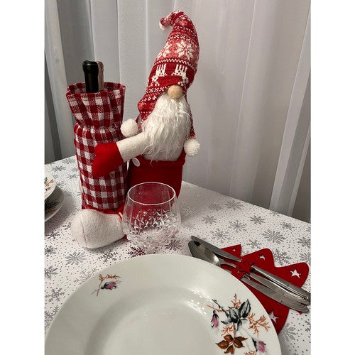 Apģērba pārvalks pudeļu maciņam - elfa pudeles kostīms ar rūķi - elfa pudeles kostīms ir lieliska dekorācija, kas izgatavota no augstas kvalitātes materiāliem, tā oriģinālā un jautrā veidā izdaiļos svētku galdu. Dekorēta alkohola pudele pārvalkā ir lieliska dāvanas ideja. Skaista dekorācija - mīlīgajam sēdošajam elfam piemīt maģiskas īpašības, kas radīs svētku atmosfēru uz galda. Kas slēpjas elfa iekšpusē? Augsta cepure, ko var lokīt dažādos virzienos, skaisti kombinezoni ar pogām, kas ikvienu radīs svētku noskaņojumu. Ziemassvētku dizains - elfs kombinezonā ar cepuri, kas tur pudeles maciņu, ir Ziemassvētku krāsās. Pateicoties tam, jūs varat būt pārliecināti, ka tas saplūdīs ar citiem rotājumiem uz galda. Atkārtoti lietojams - ilgi kalpojošs pudeļu maciņš ir ieguldījums, kas ilgtermiņā var ietaupīt naudu. Jums nav katru reizi jāpērk jauns maciņš. Specifikācija - krāsa: balta, sarkana; materiāls: poliesters; izmēri: 55 x 18 x 22 cm; svars: 196 g; svars iepakojumā: 205 g. Specifikācija krāsa: balta, sarkana materiāls: poliesters izmēri: 55 x 18 x 22 cm svars: 196 g svars iepakojumā: 205 g pudeles futrālis rūķīša formā ir neparasts rotājums, ko var novietot uz vīna vai cita alkoholiskā dzēriena pudeles, lai piešķirtu šarmu un jautrību vakariņām vai dāvinot šādu pudeli.