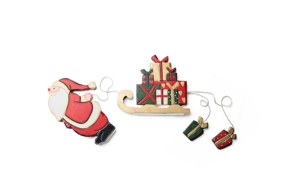 Funkcijas: - koka Ziemassvētku vecīša figūriņa ar lenti apakšā, lai piestiprinātu pie galda, garderobes utt