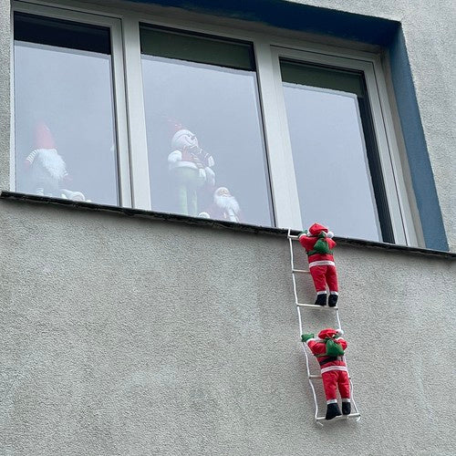 Divi Ziemassvētku vecīši kāpj pa kāpnēm. Skaists Ziemassvētku rotājums – mēs visi katru gadu gaidām Ziemassvētkus. Ziemassvētku rotājumi jau daudzus gadus ir nesaraujami saistīti ar šiem svētkiem, un mūsu Ziemassvētku vecītis ir lielisks veids, kā iejusties svētku noskaņā! Divi Ziemassvētku vecīši uz kāpnēm – divi Ziemassvētku vecīši tika novietoti uz kāpnēm. Viņi kāpj augšup pa kāpnēm. Varbūt viņi šodien pieklauvēs pie jūsu loga! Universāls pielietojums – Ziemassvētku vecītis uz kāpnēm ir oriģināls Ziemassvētku rotājums, kas noteikti piesaistīs mājsaimniecības locekļu uzmanību. Ar šo rotājumu varat izrotāt savu viesistabu, logu, veikala skatlogu un daudzas citas vietas. Reālistisks izskats – reālistiski atveidotā figūra, kas kāpj pa kāpnēm, izskatās lieliski. Ziemassvētku vecītim ir raksturīgs sarkans kostīms, ko papildina zaļa soma mugursomas, cimdu un cepures formā. Specifikācija – krāsa: sarkana, melna, zaļa, balta; dominējošais ārējais materiāls: poliesters, citi: PVC + sintētiskā šķiedra + pp, pildījums: pp kokvilna) + kāpnes (dominējošais materiāls: poliesters, citi: PVC; ūdensnecaurlaidīgs: jā; kāpņu garums: 120 cm; Ziemassvētku vecīša izmēri: 40 x 25 cm; svars: 317 g; svars iepakojumā: 330 g. specifikācija krāsa: sarkana, melna, zaļa, balta dominējošais ārējais materiāls: poliesters, citi: PVC + sintētiskā šķiedra + pp, pildījums: pp kokvilna) + kāpnes (dominējošais materiāls: poliesters, citi: PVC) ūdensnecaurlaidīgs: jā kāpņu garums: 120 cm Ziemassvētku vecīša izmērs: 40 x 25 cm svars: 317 g svars iepakojumā: 330 g