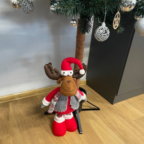 Teleskopisks ziemeļbriedis ar maks. 88 cm teleskopiskām kājām - figūra, kas stāv uz īsām kājām, ir 55 cm augsta, bet, kad kājas ir izstieptas - pat 88 cm! Turklāt ziemeļbrieda cepuri var arī modelēt, jo tajā ir ievietota plāna stieple. Izkārtojuma iespēja - ziemeļbriedis būs lielisks papildinājums jebkuram Ziemassvētku rotājumam. Tas izskatīsies perfekti pie kamīna, zem skaisti izrotātas Ziemassvētku eglītes, uz loga vai uz kumodes. Novietojiet šo figūriņu priekšnamā vai viesistabā, lai sagaidītu viesus ar tās dzīvespriecīgo izskatu. Tā lieliski iederēsies arī bērnudārzos, skolas klasēs un ārstu kabinetos. Visur, kur tā sagādā prieku ar savu izskatu. Skaists rotājums - mīlīgajam ziemeļbriedim piemīt maģiskas īpašības, kas jebkurā interjerā ienesīs svētku atmosfēru. Kas atrodas figūriņas iekšpusē? Augsta ar fliteriem rotāta cepure, ko var saliekt dažādos virzienos, izliekts vēders un skaista jaka, kas ikvienu ienesīs Ziemassvētku noskaņā. Ziemassvētku dizains - Ziemassvētku ziemeļbriedij ir izliekts vēders, augsta, smaila ar fliteriem rotāta cepure un šalle. Pateicoties svētku krāsām, kurās tā ir izgatavota, varat būt pārliecināti, ka tā iederēsies citos jūsu mājas vai dzīvokļa rotājumos un interjera iekārtojumā. Pateicoties teleskopiskajām kājām, tās augstumu var mainīt atkarībā no jūsu vajadzībām. Tās būs arī lieliska dāvanas ideja. Specifikācijas - materiāls: poliesters; krāsa: balta, brūna, sarkana, pelēka; izmēri: 25 x 55-88 cm; svars: 470 g; svars iepakojumā: 880 g. Specifikācijas: materiāls: poliesters; krāsa: balta, brūna, sarkana, pelēka; izmēri: 25 x 55-88 cm; svars: 470 g; svars iepakojumā: 880 g. Izbaudiet Ziemassvētku burvību kopā ar mīlīgu ziemeļbriedi. Pareizi izvietota figūriņa radīs mājīgu un svētku atmosfēru un piešķirs šarmu jūsu dzīvoklim. Tā būs arī lieliska Ziemassvētku dāvana.