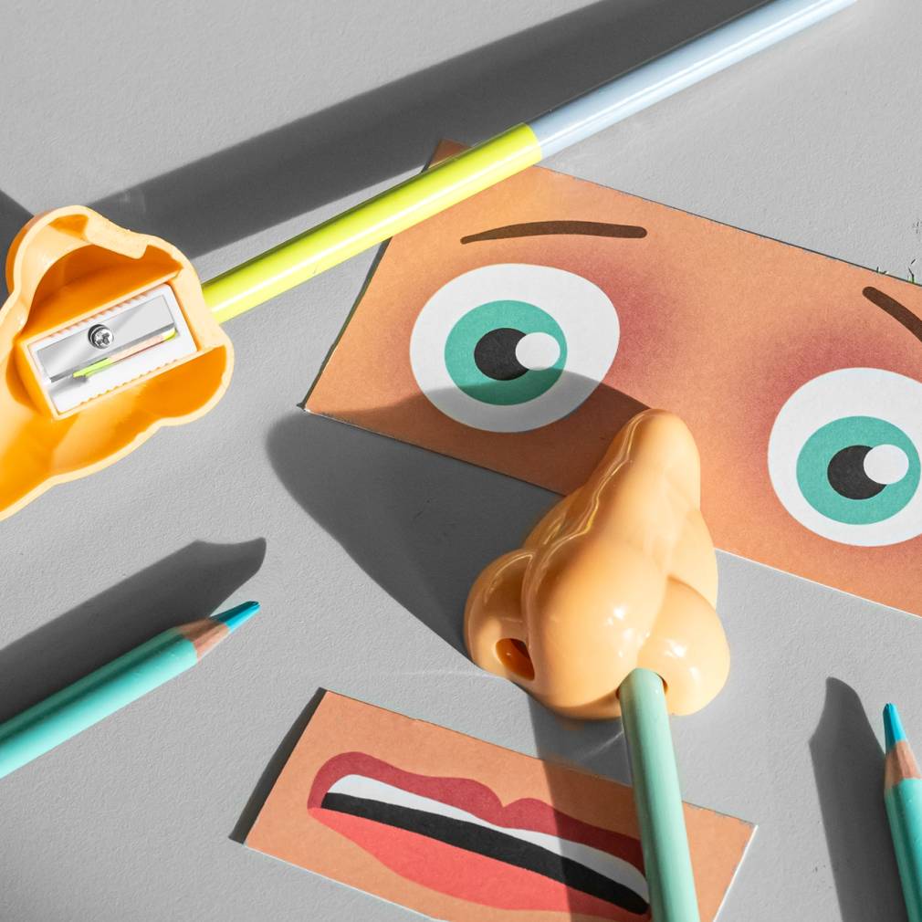 Neparasti uzjautrinošs un dzīvespriecīgs zīmuļu asināmais cilvēka deguna formā ir unikāls papildinājums jebkuram kancelejas piederumu komplektam!