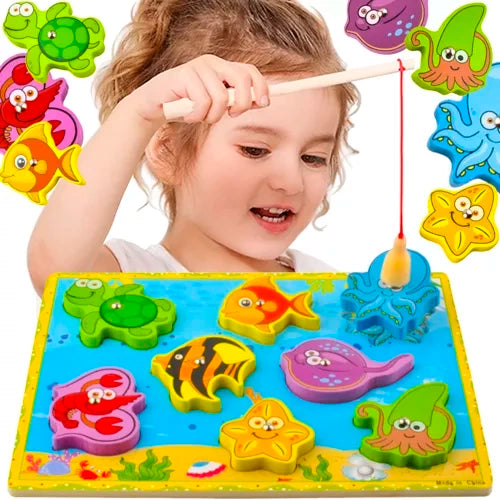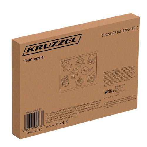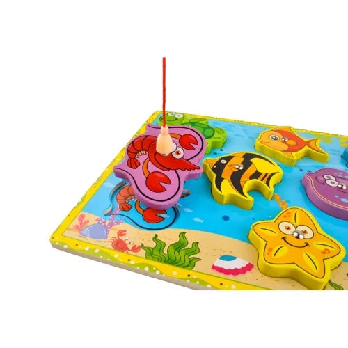 "Zivs" puzle 10 elementi - komplektā ietilpst dēlis ar 8 ūdens dzīvniekiem ar metāla adatām. Komplektā ietilpst makšķere, ko var izmantot, lai izņemtu dzīvniekus no šķirotāja. Magnēti ir ļoti spēcīgi, tāpēc pat mazāks bērns var bez problēmām noķert zivis. Ietekmē bērna attīstību – stimulē iztēli, attīsta loģisko domāšanu un vizuālo atmiņu. Tā māca saistīt formas un krāsas, attīsta roku veiklību un, kopīgām spēlēm, veido sociālo uzvedību, piemēram, spēju integrēties un sadarboties grupā. Lieliska jautrība – "makšķerēšanas" spēle ir lieliska spēle bērniem, kas sniedz daudz prieka un aizrautības. Aicinām piedalīties šajā ūdens piedzīvojumā un noskaidrot, kurš kļūs par čempionu lielākās zivs noķeršanā! Pievilcīgs izskats – estētiskās vērtības ietekmē laba meistarība, kā arī spilgtas un siltas krāsas. Puzle rosina bērna interesi un mudina spēlēties atkārtoti. Specifikācija – materiāls: ar papīru pārklāts koks + zivs: MDF + dzelzs + makšķere koks + neilons + PVC + magnēts; Izmēri: 29,5 x 22 x 0,6 cm; makšķeres garums: 19 cm, svars: 389 g; svars iepakojumā: 467 g. Komplekta specifikācija: Materiāls: ar papīru pārklāts koks + zivtiņa: MDF + dzelzs + makšķere koks + neilons + PVC + magnēts Izmēri: 29,5 x 22 x 0,6 cm Makšķeres garums: 19 cm Svars: 389 g Svars iepakojumā: 467 g Komplektā ietilpst dēlis 8 koka jūras radības ar magnētu 1 koka makšķere ar magnētu Zivju spēle noteikti piesaistīs jaunāko bērnu interesi un ļaus priecīgi pavadīt brīvo laiku pat nelabvēlīgos laika apstākļos! Tā izklaidē un māca. Bērnam ir iespēja makšķerēt un vienlaikus iepazīt ūdens pasauli. Spēle ir interesants komplekts, kas sastāv no dēļa, 8 jūras radībām un makšķeres. Makšķerei un jūras radībām ir mazi magnēti, kas neapšaubāmi padara spēli pievilcīgāku, kā arī atvieglo ķeršanu. Spēles estētisko vērtību ietekmē kvalitatīva izgatavošana, kā arī spilgtas un siltas krāsas un ļoti jauki dzīvnieku imitācijas. Tas viss piesaista uzmanību un mudina bērnu spēlēties atkārtoti. Brīdinājuma saturs: - brīdinājums. Nav piemērots bērniem līdz 36 mēnešu vecumam. Sīkas detaļas. Aizrīšanās risks. - Izstrādājumi nav piemēroti lietošanai pārtikā. - Nepakļaujiet skarbajiem laikapstākļiem un ugunij. - Lietojiet paredzētajam mērķim. - Neignorējiet ieteikumus attiecībā uz lietotāja vecumu. - Nelietojiet bojātu izstrādājumu. - Montāžai nepieciešams pieaugušais. - Neglabājiet nesaliktas detaļas vietās, kur bērni tām var piekļūt. - Iepakojums nav rotaļlieta. Rotaļlietu jāizsaiņo pieaugušajam, un iepakojums un tā detaļas jānoņem bērnam nepieejamā vietā.