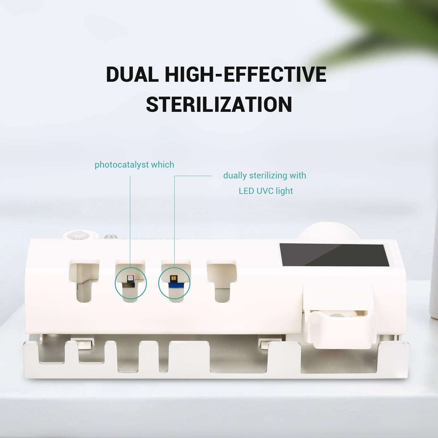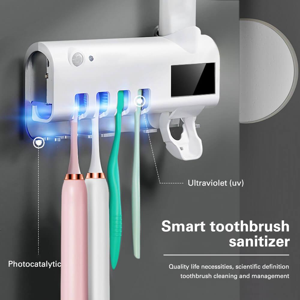 Zobu birstes turētājs ar UV sterilizatoru un zobu pastas dozatoru, tas ir viss nepieciešamais zobu higiēnai vienā vietā.