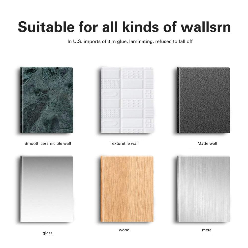 Pie sienas piestiprinās ar speciālo līmējamo stiprinājumu, kas nāk komplektā. Nav nepieciešamas skrūves. Un no stiprinājuma jebkurā brīdī var noņemt, lai iztīrītu.