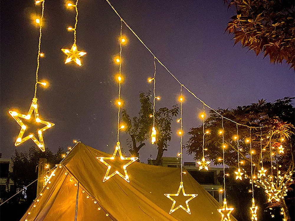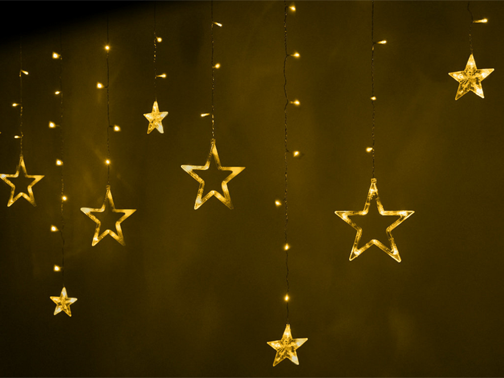 Zvaigžņu vītnes gaismas aizkars 138 LED āra siltā krāsā