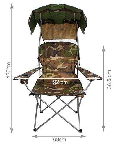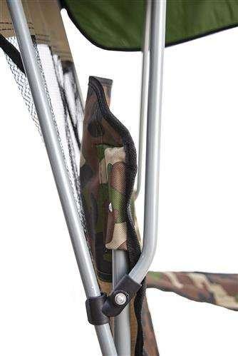 Šim makšķerēšanas krēslam ir regulējama nojume ēnai. Jumtiņš ir viegli noņemams.
